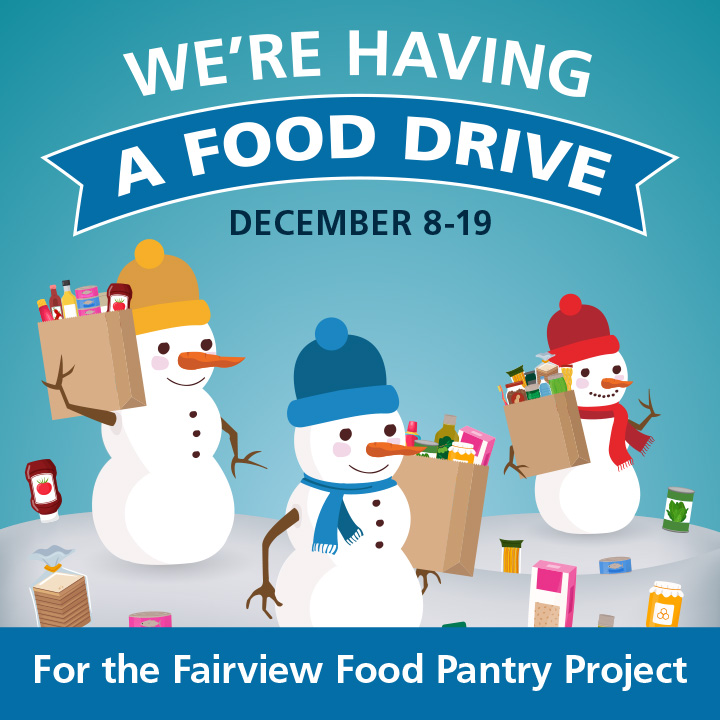 Share the gift of energy and nourishment within our community with a food donation to the Fairview Food Pantry! The CGC will be collecting non-perishable food and toiletries for the Fairview Food Pantry Project between Monday, December 8 – Friday, December 19, 2025.