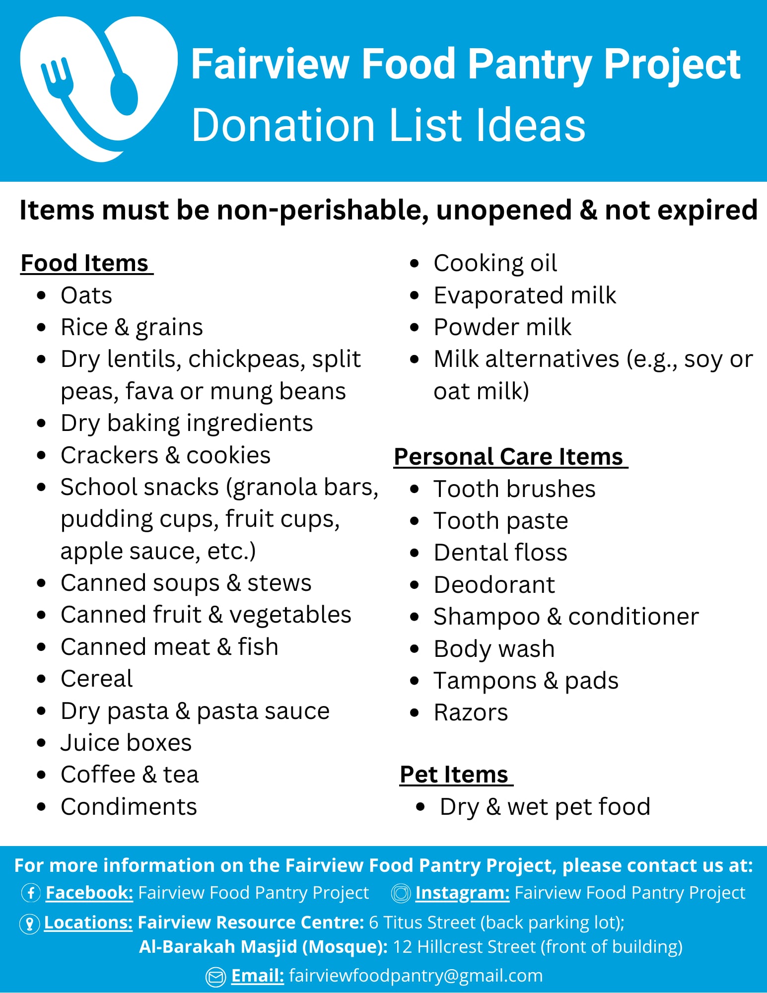 Questions about the Fairview Food Pantry Project? Email them at fairviewfoodpantry@gmail.com